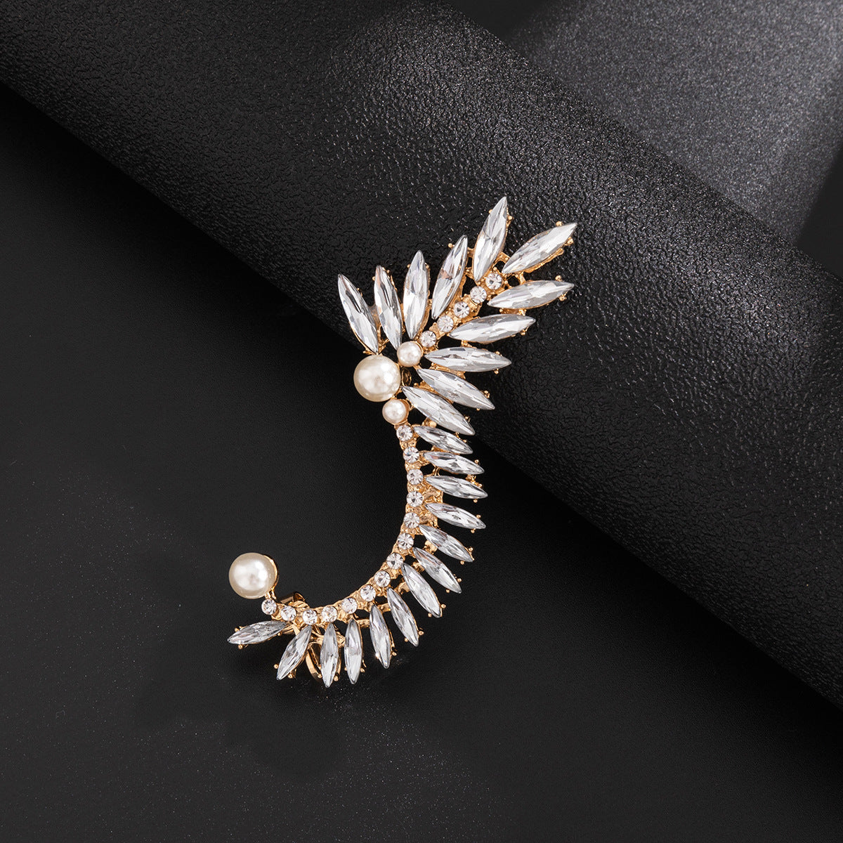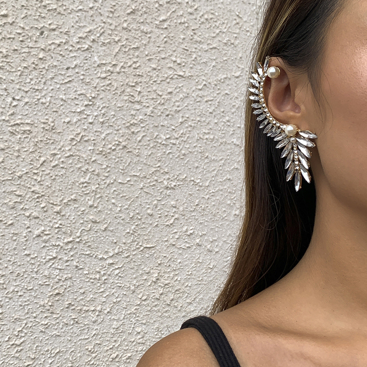Crystal Bloom: Geometric Beaded Ear Cuff with Pearl Accent