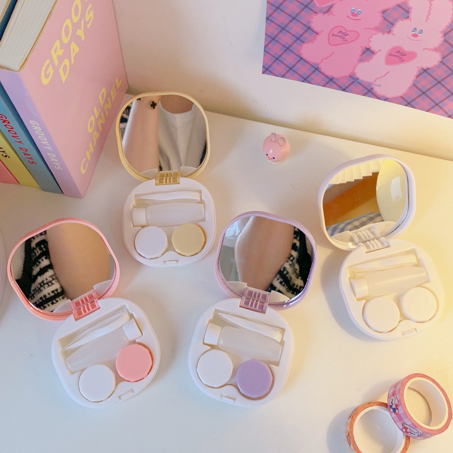 Charming Reflections: Cute Mirror-Included Contact Lens Case