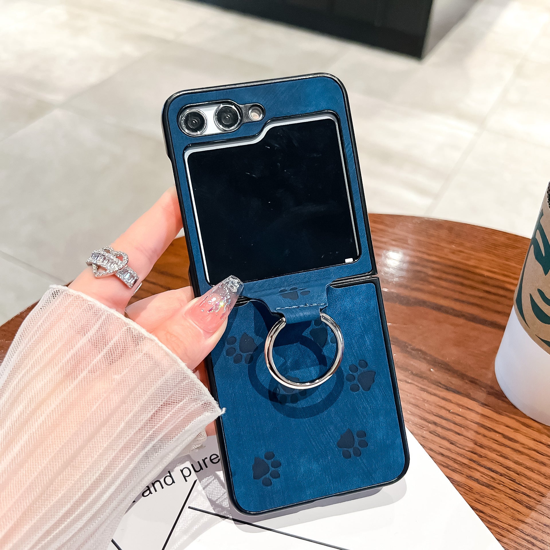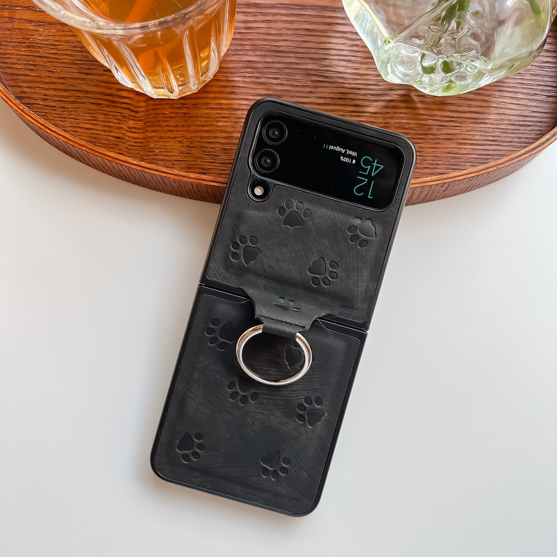 Pawfect Protection: Paw Frosted Ring Folding Phone Case for Samsung Z Flip