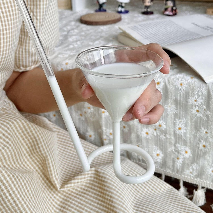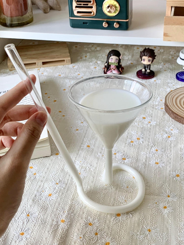 Spiral Sipper: Chic Glass with Integrated Straw Handle